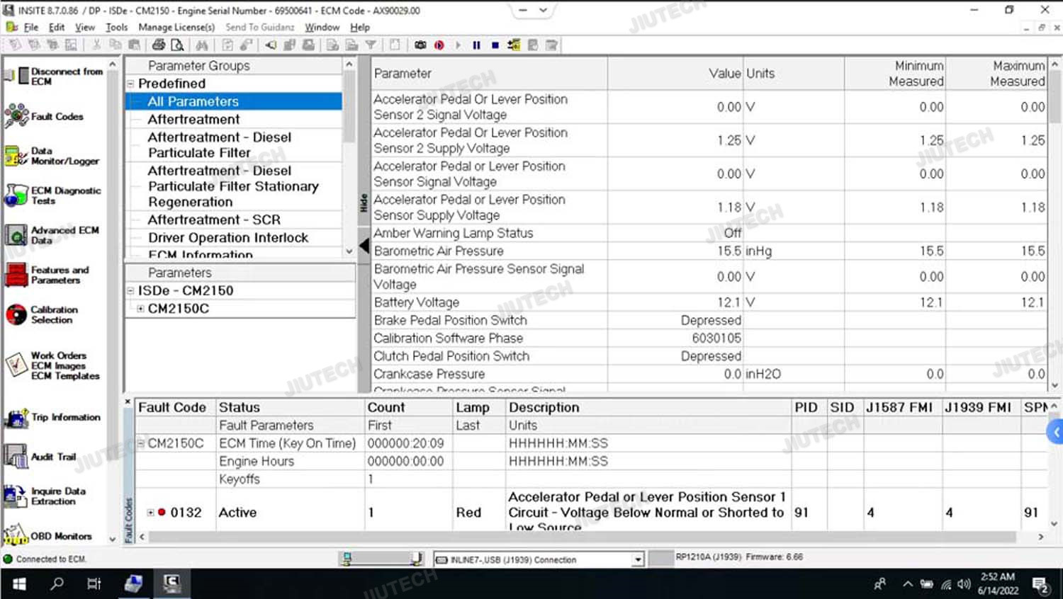 - Standaard J1939 adapters werken, bijvoorbeeld USB-Link 2.