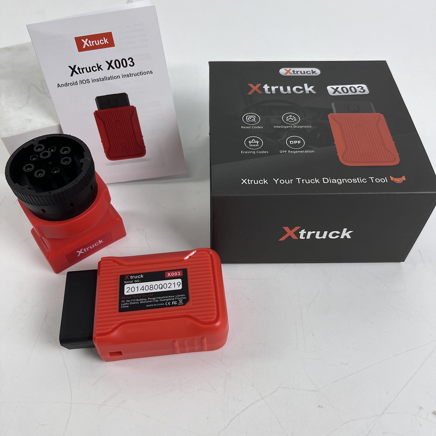 | Productnaam | Xtruck x003 full system diagnostic tool | 11 speciale functie | Brekers/olie/SAS/BMS/TMPS/DPF/IMMO opnieuw instellen |